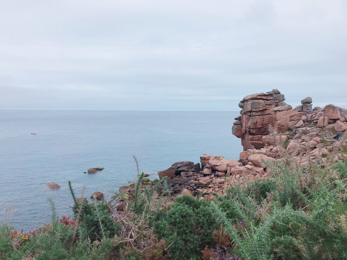 I’m a person that hates walking or hiking, but Perros Guirec got me no choice 🙂 . Fortunately, I remembered to bring my sneakers. Well, let’s say Perros Guirec city center is just fine – they have some basic restaurants, bars, and creperies, and decent beach. Besides, it was raining and gloomy on the first day I arrived, quite disappointing really. Until the next day, I found this astonishing hiking track that lead me into pink granite rocks which have been sculpted by the sea into varied shapes and patterns. And everything has changed, my holiday spirit was finally back on track. 🙂 For a person who hates walking a lot, 7 km hiking was quite something for me, the worst thing was I forgot to bring a bottle of water, as I don’t think I was going to walk that far. The problem was there’s no nearby town unless you turn your way back to the start or continue walking to the next village, Ploumanac’h. Well, I really had no choice did I? Yet, I remembered that I was really happy, those beautiful views – like literally in every steps I took – made me forget the fact that I really hate walking.